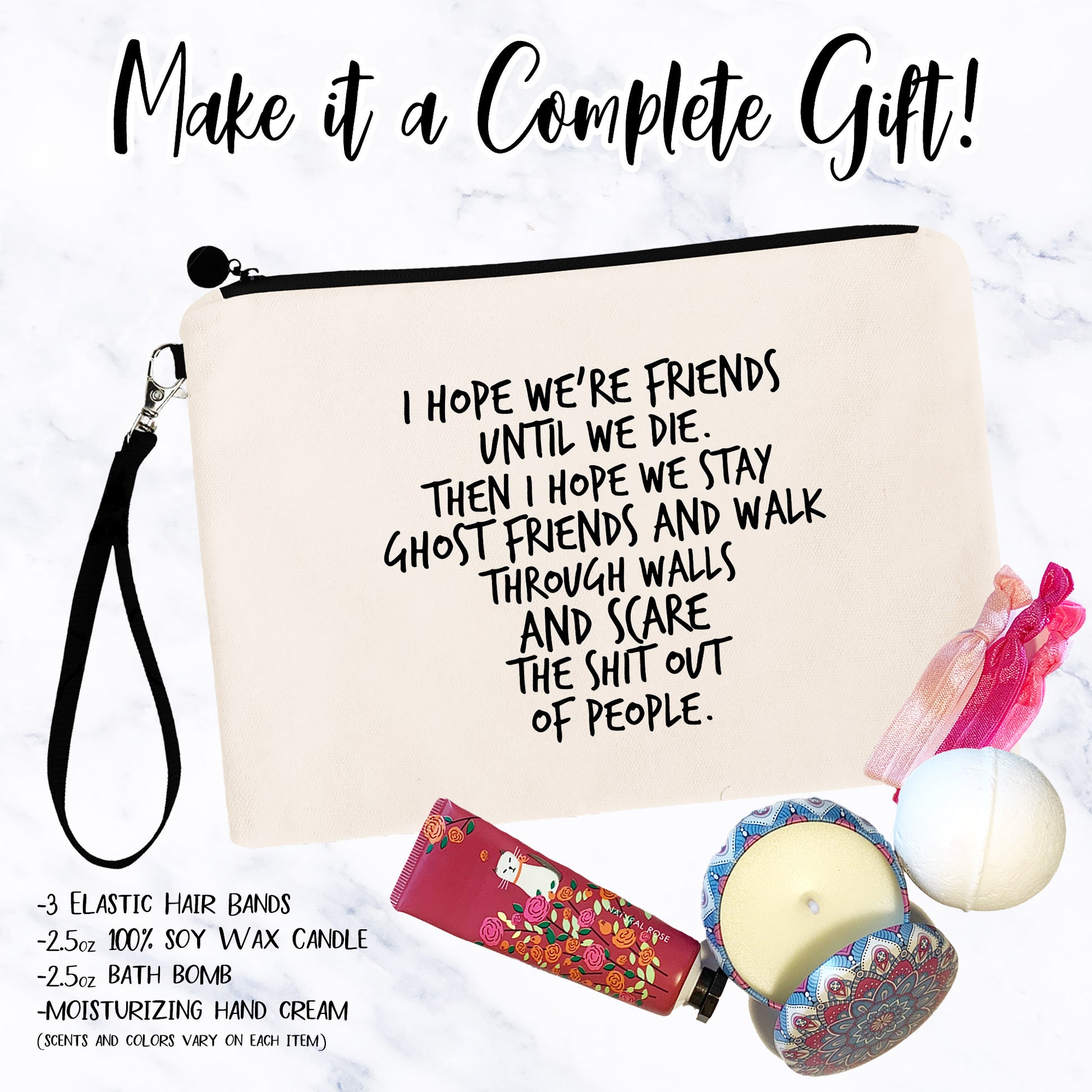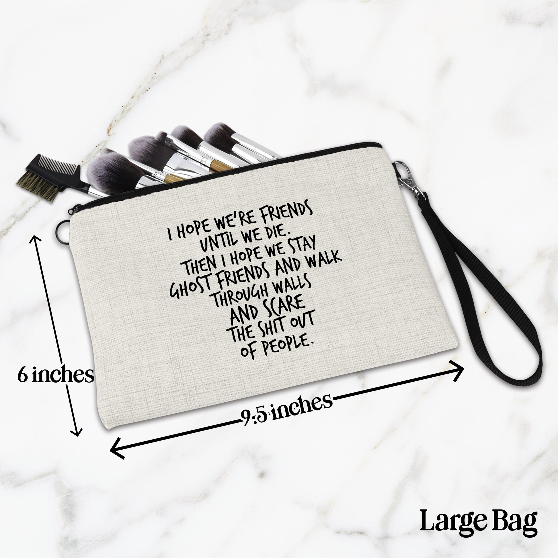 This cosmetic bag is for the ride-or-die bestie who's as sassy as you are. With a hilarious "ghost friends" vibe, it's perfect for celebrating your unbreakable bond and your shared mission to haunt the world together. Funny, functional, and full of attitude, it's the ultimate bestie-approved gift!