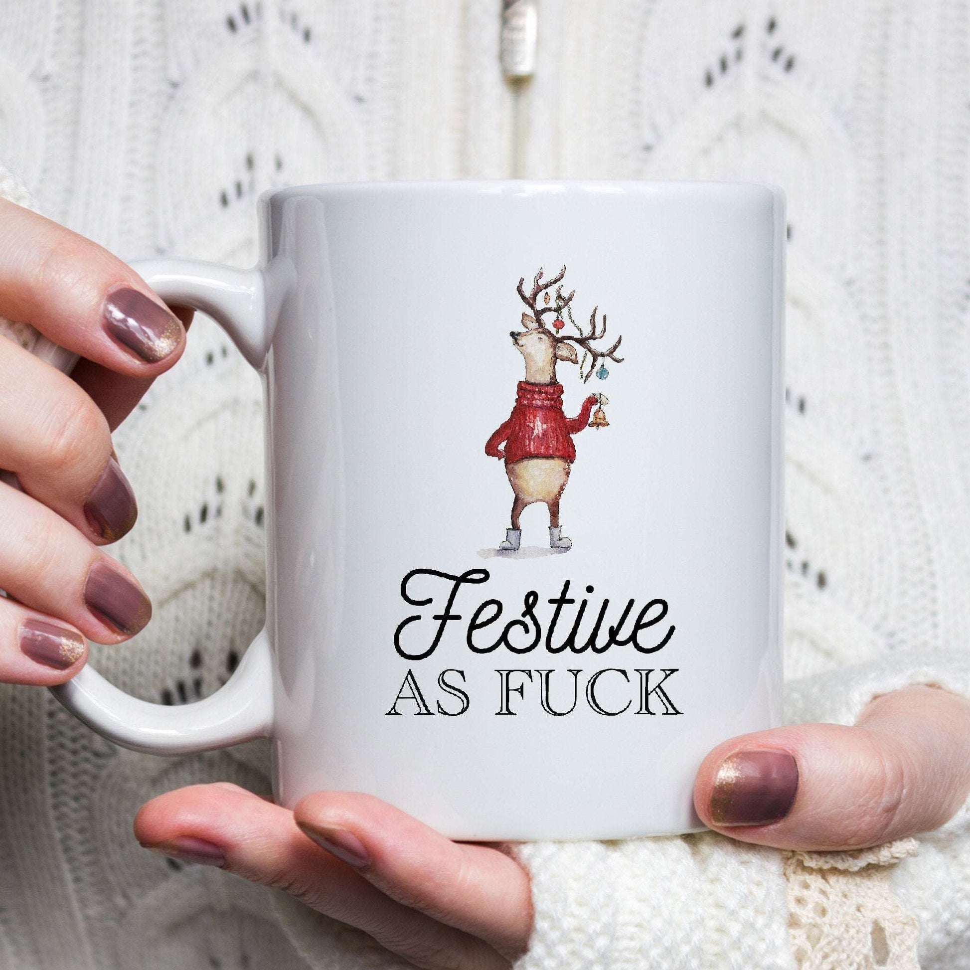 The "Festive as Fuck" mug is here to bring some serious holiday spirit with a side of sass. Whether you're sipping hot cocoa, coffee, or something stronger, this mug is perfect for those who celebrate the season with boldness and humor. Ideal for anyone who loves to make the holidays extra festive (with attitude).