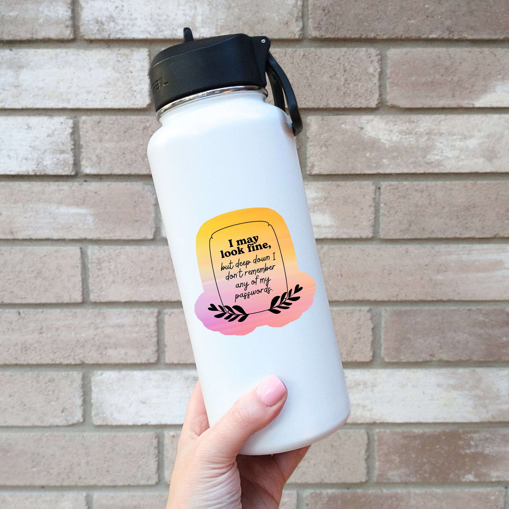 Stylish on the outside, chaotic on the inside. This sticker gets the struggle of modern life—and forgotten passwords.