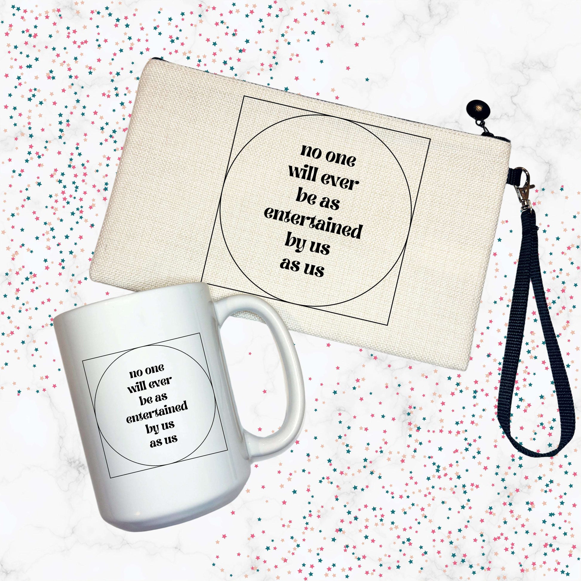 You're the duo that turns every boring moment into a comedy show—and no one gets the joke quite like you do. This mug and cosmetic bag bundle is for the friends who are their own favorite audience. Keep laughing, legends.