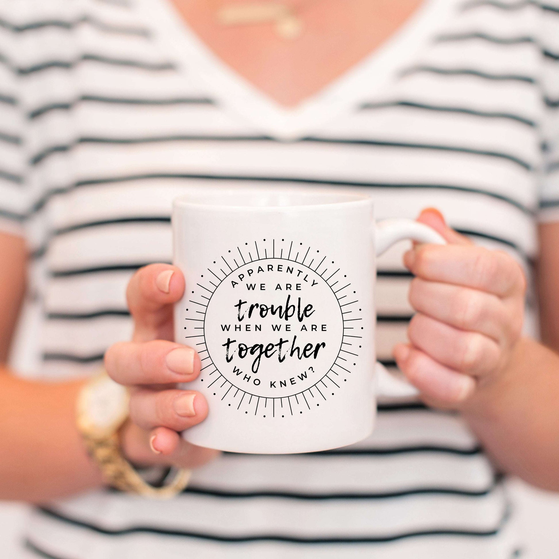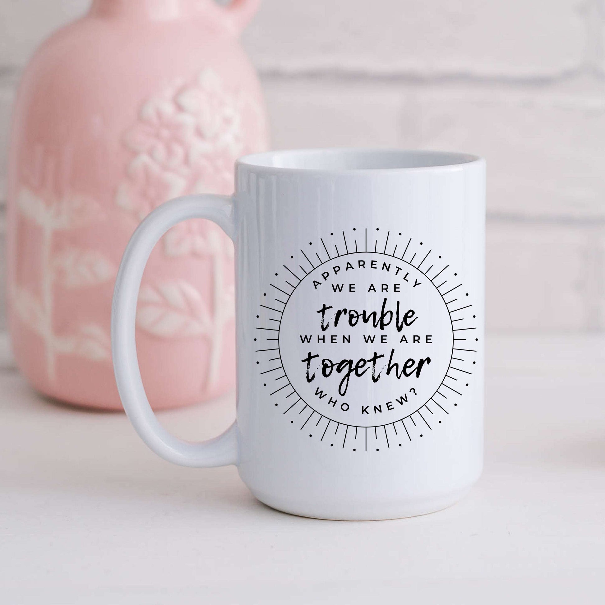 For the dynamic duo that turns every hangout into chaos. The äóìApparently Weäó»re Trouble When Weäó»re Togetheräó� mug is hilarious, bold, and perfect for coffee, tea, or plotting your next adventure. Because some friendships are just built to break the rulesäóîand laugh the whole way through. äִ_ôî«_ô͂